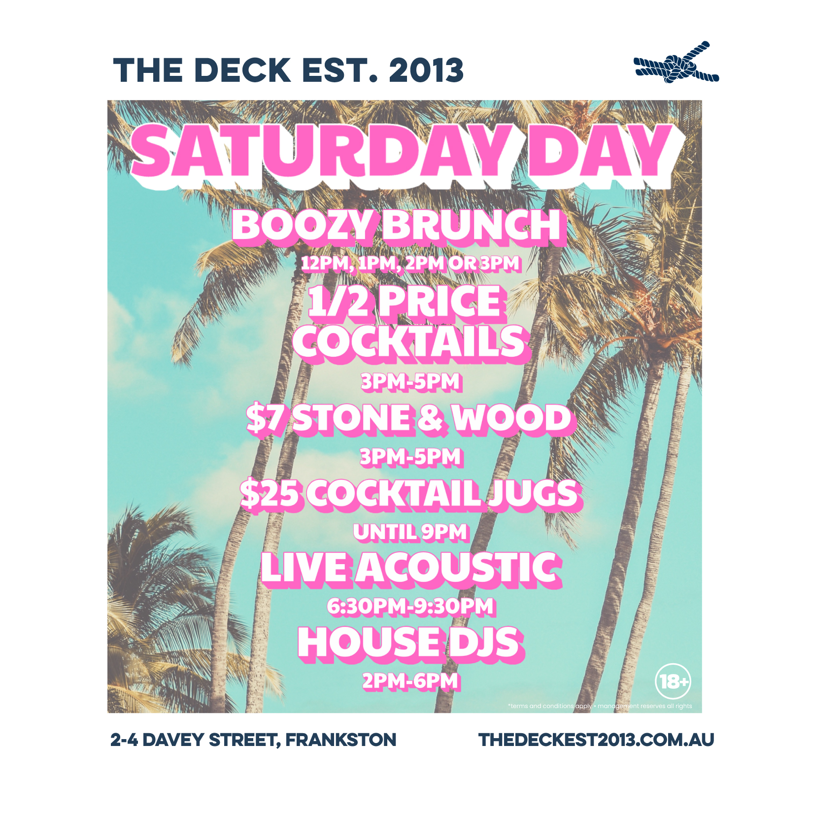 Start Your Saturday Right With Saturday Days @ The Deck!💃